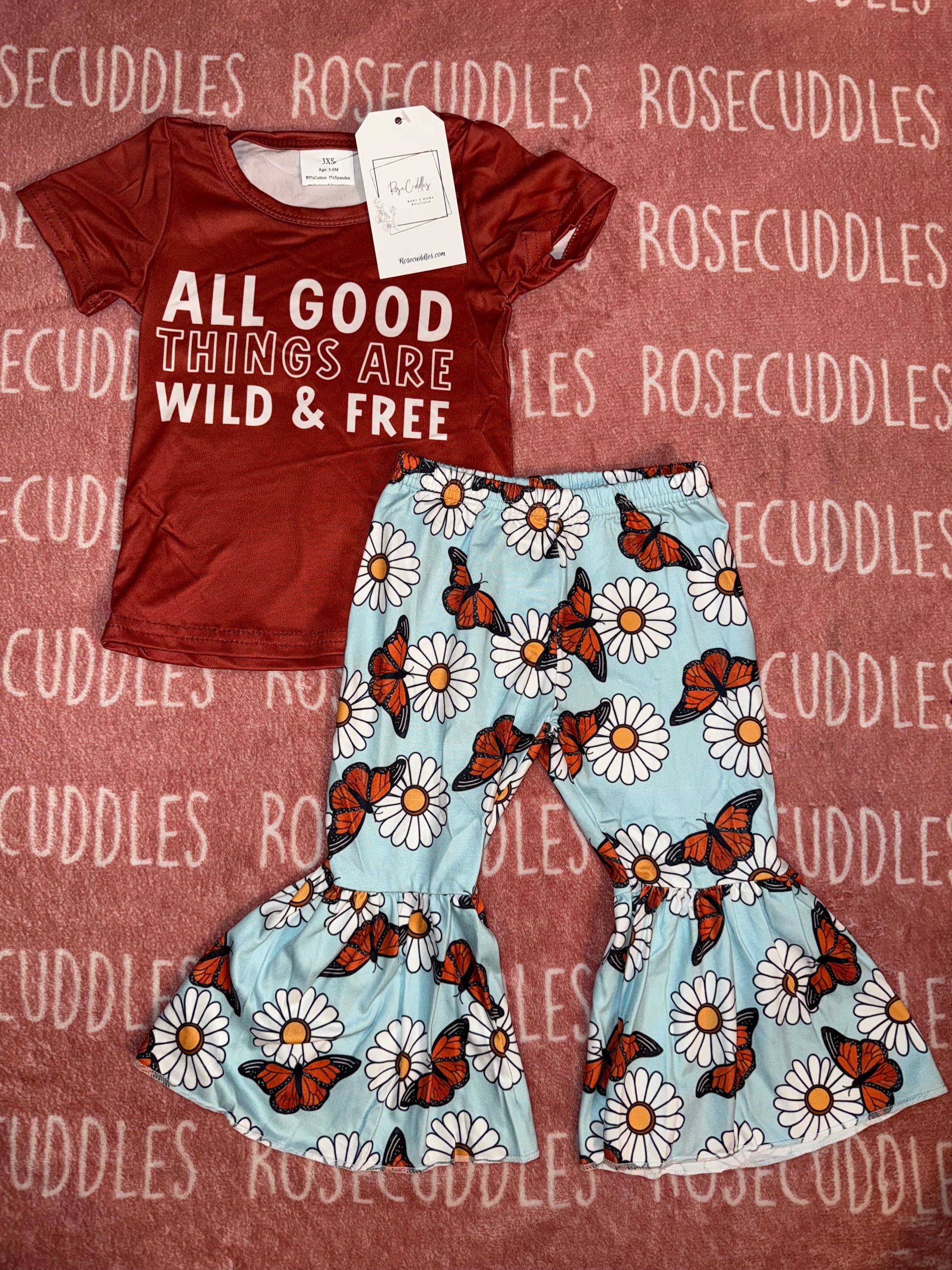 Crafted from a comfortable blend of 95% cotton and 5% spandex, the Wild & Free Butterfly Bellbottoms offer a perfect balance of softness and stretch. Designed to contour your silhouette while providing freedom of movement, these bellbottoms feature a distinctive butterfly pattern that adds a stylish, retro flair to your wardrobe. Ideal for those seeking both comfort and a bold statement, they effortlessly combine casual wear with unique visual appeal.
